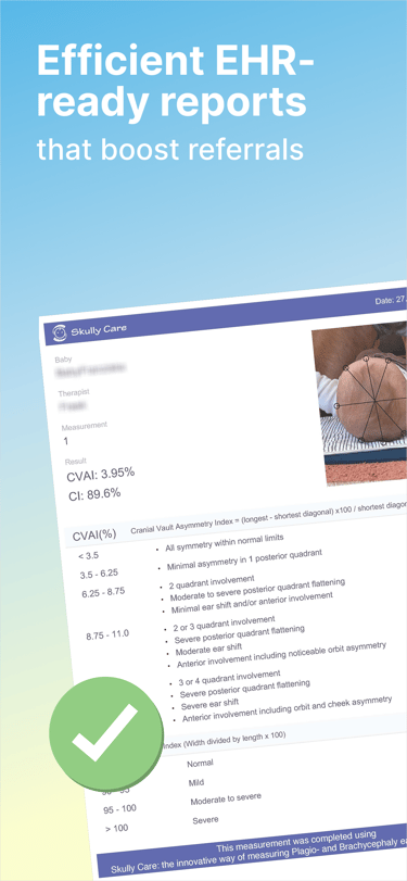 Con Cuidado Skully, puedes revisar la forma de la cabeza de tu bebé usando solo tu teléfono. Toma una foto guiada y, en minutos, observa: